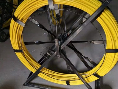 玻璃钢穿孔器又名(玻璃钢穿线器、玻璃钢穿管器,穿孔器,穿管器,电缆穿管器,电缆穿孔器)对于在管道中牵引引导绳是辅助工具。光滑又富于弹性的表面可使穿孔器轻松地通过狭窄的通道。穿孔器由三部分构成:铜芯、玻璃纤维加强层、高压低密度聚乙烯防护层(平滑、坚固,可抵抗恶劣环境)。铜芯导体使捅条可以用不同方式轻易安放。璃钢穿孔器具有省时,省力,提高工效等优点,可用于电信管道清洗及光缆,电缆和塑料子管的布放。使用时首先将玻璃钢覆杆由引轮引出,然后与相应的金属头联接,穿入管路内。用于清理时,引导头带动清理工具,可以清理管道;用于布放电缆时,可先将钢丝或铁线带入,尔后用钢丝或铁线牵引电缆入管。杆 11-18mm 100-500m 温度范围 -40+80小弯曲半径 295mm 牵引断裂张力 4.5T 线密度 150g/m 建筑施工引线用墙壁穿线器,长度30m40m60m80m120m150M200M300M500M 1000米等,可按客户要求定制。