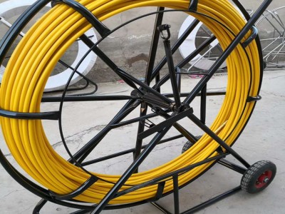玻璃钢穿孔器又名(玻璃钢穿线器、玻璃钢穿管器,穿孔器,穿管器,电缆穿管器,电缆穿孔器)对于在管道中牵引引导绳是辅助工具。光滑又富于弹性的表面可使穿孔器轻松地通过狭窄的通道。穿孔器由三部分构成:铜芯、玻璃纤维加强层、高压低密度聚乙烯防护层(平滑、坚固,可抵抗恶劣环境)。铜芯导体使捅条可以用不同方式轻易安放。璃钢穿孔器具有省时,省力,提高工效等优点,可用于电信管道清洗及光缆,电缆和塑料子管的布放。使用时首先将玻璃钢覆杆由引轮引出,然后与相应的金属头联接,穿入管路内。用于清理时,引导头带动清理工具,可以清理管道;用于布放电缆时,可先将钢丝或铁线带入,尔后用钢丝或铁线牵引电缆入管。杆 11-18mm 100-500m 温度范围 -40+80小弯曲半径 295mm 牵引断裂张力 4.5T 线密度 150g/m 建筑施工引线用墙壁穿线器,长度30m40m60m80m120m150M200M300M500M 1000米等,可按客户要求定制。