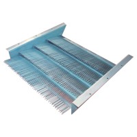 该筛板的高频音叉条,在随筛板振动的同时,产生二次高频谐振,使物料前进速度加快,加速了筛面上颗粒物料的下沉和已接触筛面的小颗粒向筛孔处横移的速度,从而增加了通过筛孔的概率,该筛板的开孔可高达80%,有一定水分的粘物,靠其高频自振抖落,不易粘结在筛条造成堵塞,是粘性或含有纤维的难筛物料的理想筛板。