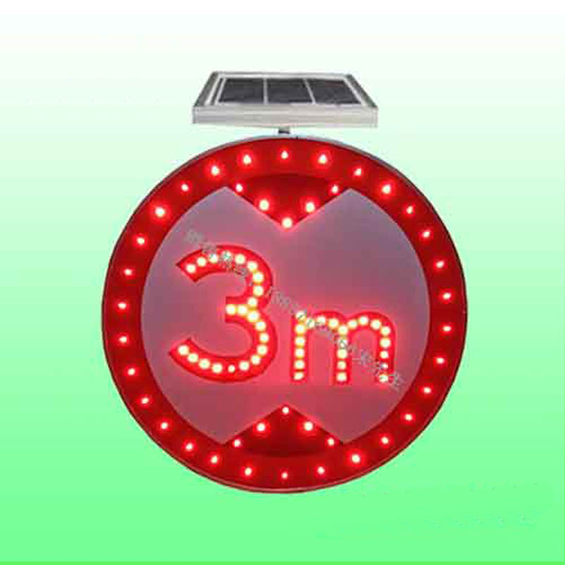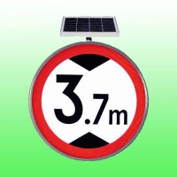 太阳能限高标志牌是以多晶硅太阳能板、蓄电池组件为能源,它利用太阳能板将白天的阳光转换成电能贮存于蓄电池中,当夜幕降临、视线昏暗或雨雾天气等视线不佳情况下,通过LED内发亮光来点亮清晰图文,传达交通信息。