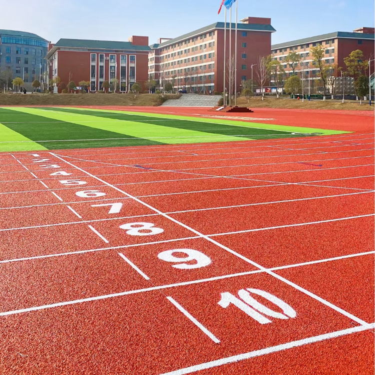 塑胶跑道又称全天候田径运动跑道,是用塑料或橡胶制成的运动场跑道。 塑胶跑道由聚氨酯预聚体、混合聚醚、废轮胎橡胶、EPDM橡胶粒或PU颗粒、颜料、助剂、填料组成。塑胶跑道具有平整度好、抗压强度高、硬度弹性适当、物理性能稳定的特性,有利于运动员速度和技术的发挥,有效地提高运动成绩,降低摔伤率。塑胶跑道是由聚氨酯橡胶等材料组成的,具有一定的弹性和色彩,具有一定的抗紫外线能力和耐老化力,是国际上公认的最佳全天候室外运动场地坪材料。
