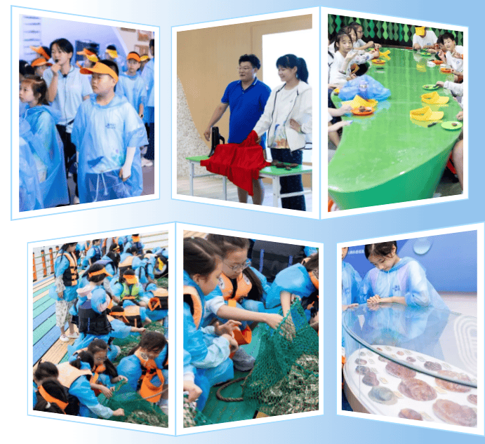 神秘的海鲜盒子:这是勇敢者的游戏,将手伸进装有小鱼、小虾、八爪鱼、海胆、海螺等装有 20 余种海洋生物的盲盒中,通过感官分辨不同种类的海鲜,并描述它们的特点。