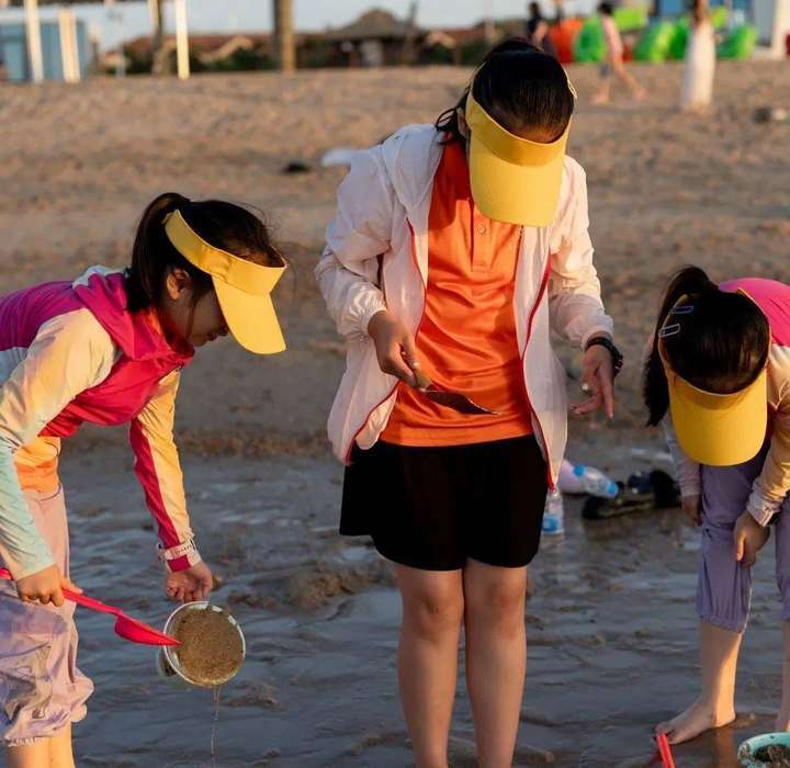 来到海边的第一天,我们奔向那香海黄金海岸,在绵软的沙滩上和小伙伴们一起,用双脚感受沙子,我们准备了各种玩沙玩具,小桶、小铲、沙子滤斗和各种模具,孩子们畅玩的同时,赏海边落日,在夕阳下享受惬意的海边时光。