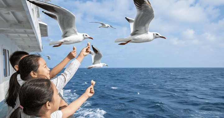 乘船过程中,为孩子们准备了海鸥喜欢的