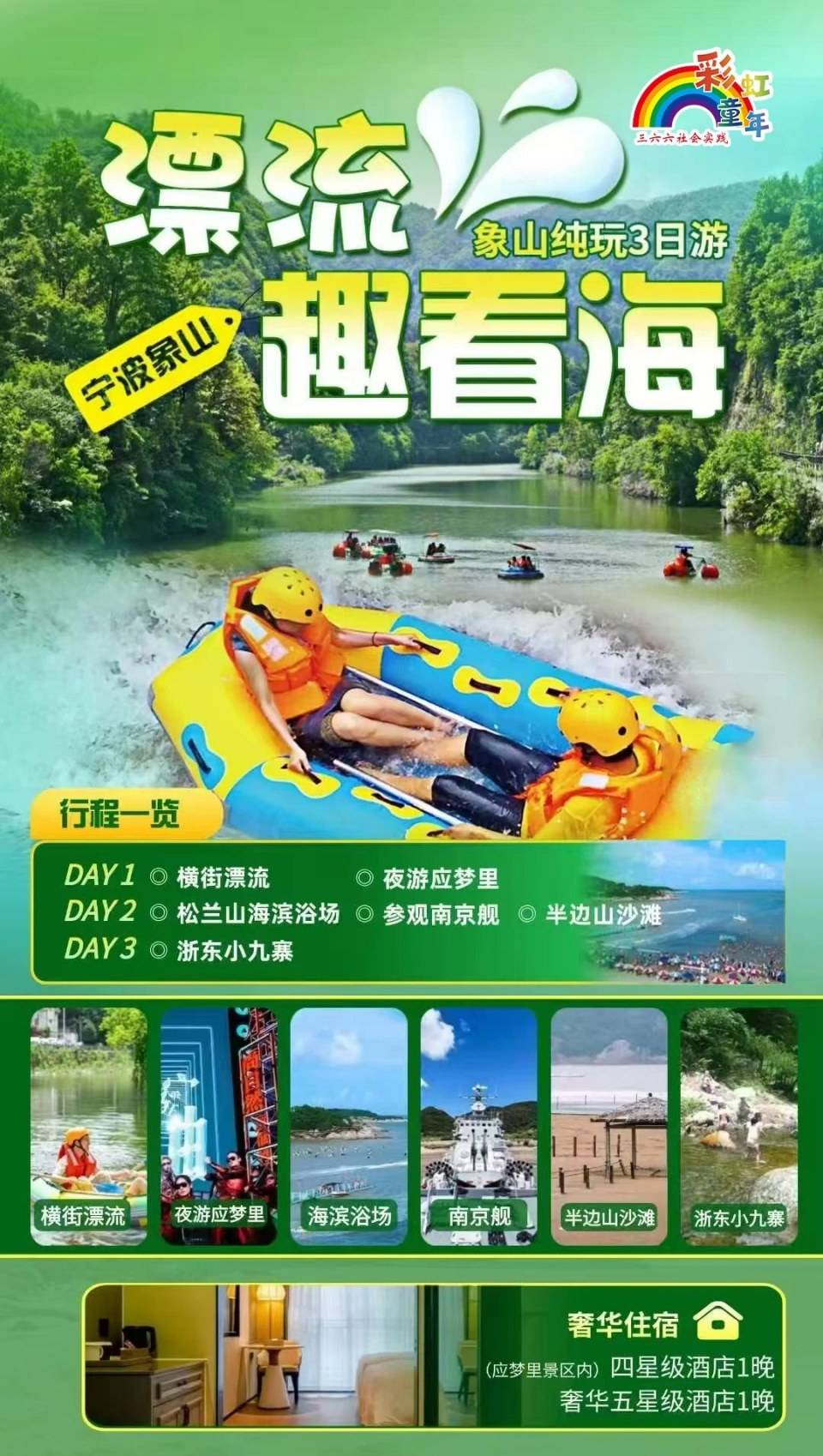 夏日炎炎,谁不想去海边感受清凉的海风和细腻的沙滩呢?这个夏天,三六六社会实践带领孩子们前往宁波象山,开启一场别开生面的夏令营活动!在这里,孩子们将体验横街漂流的刺激,感受应梦里景区夜晚的赛博朋克文化,畅玩海滨浴场,参观南京舰,还有机会前往宁波最佳避暑地浙东小九寨,畅快游玩三天,感受夏天的美好!