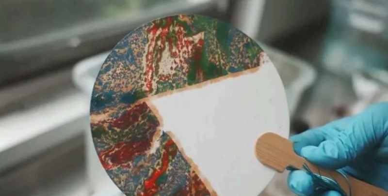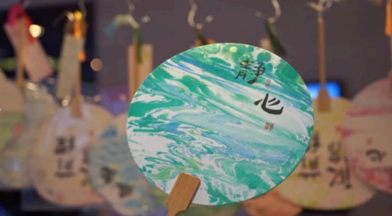 彩漆滴入水中轻微搅拌后自然散开,手持素扇缓缓沉入水中,或旋转、或轻摇,水波荡漾间,扇面呈现出独一无二的绚丽图案。传统漆扇的制作流程很多,涉及到多种工艺,对“门外汉”来说,想要掌握这些技术实在是难上加难。不过,当你做简易版网红漆扇的时候,已经不知不觉用过了大漆工艺中一种叫作“漂漆”的技法。