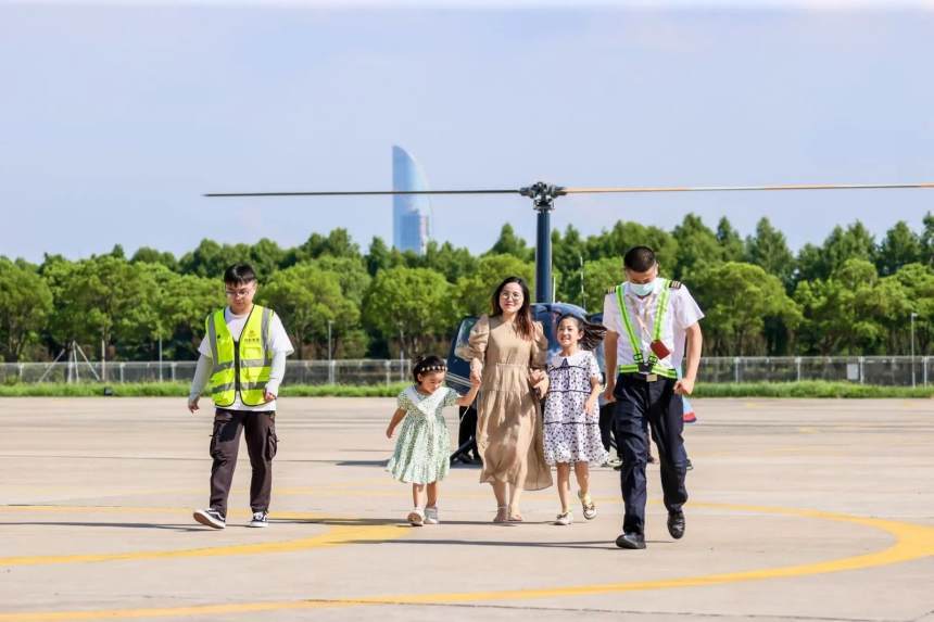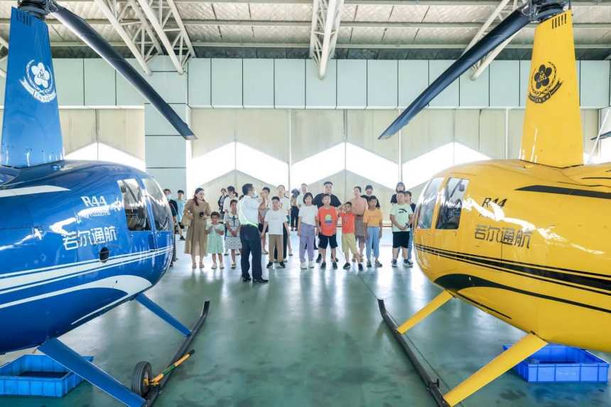 走出机库,来到户外,孩子们将亲眼目睹直升机的飞行训练。直升机在蓝天中盘旋,飞出各种姿态,孩子们的欢呼声、掌声此起彼伏。一次次起飞与降落,让孩子们真切感受到飞行的魅力。在这里,孩子们不仅能留下与直升机的珍贵合影,更能在心中种下对航空的热爱与向往。