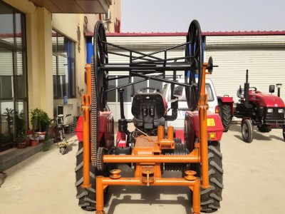 引普通钢丝绳或锦纶绳,另一边是带槽的大直径卷筒可以牵弓|无扭钢丝绳。拖拉机牵引机可以在座位上操作,也可以在地面操作;拖拉机牵弓|机可配