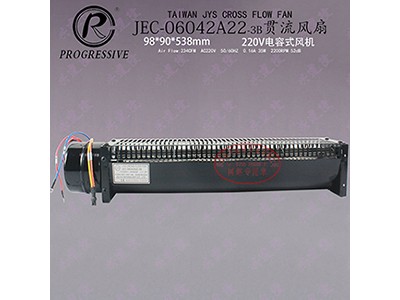 台湾金亿翔JYS贯流风机JEC-06042A22-3B,2200转高转速大风量横流风扇,双滚珠轴承,扇叶直径为60mm,AC230V,散热长度为429mm,风机总长度(含电机)是538mm,电容式横流风扇,波峰焊设备用贯流风机!