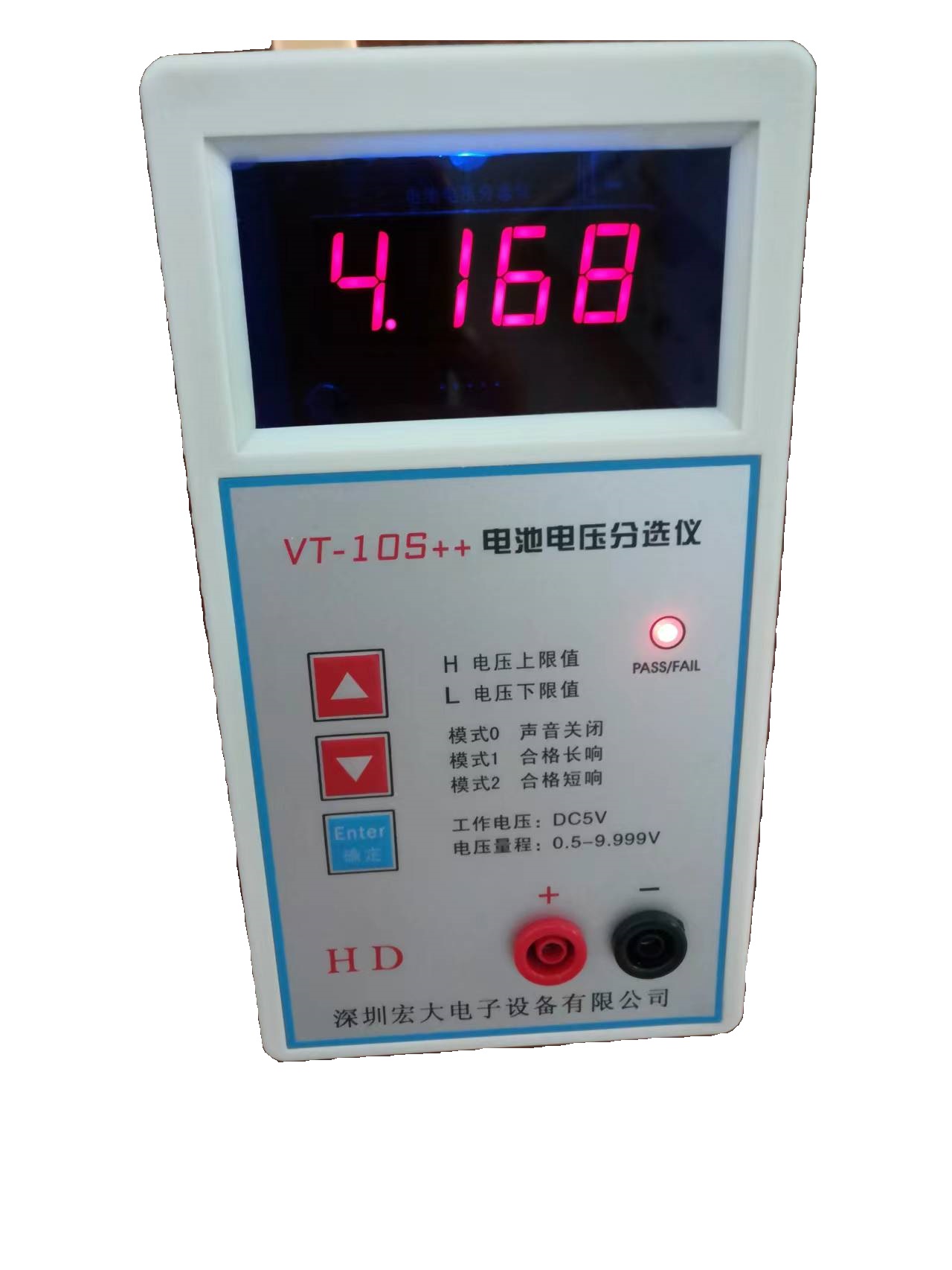VT-10S+ 电压分选仪是一款专门测试电压的仪表,其测试速度超快、精度高、并能设置范围,声光报警提示。通过测得电压值来快速判断和筛选电池的优劣状态。测试效率高,操作简便,大大节省了人工和生产成本。其广泛适用于各类电池、电芯生产厂家;同时也非常适合各电池经销商、电池终端用户对电池或电芯进行高效的来料检测。