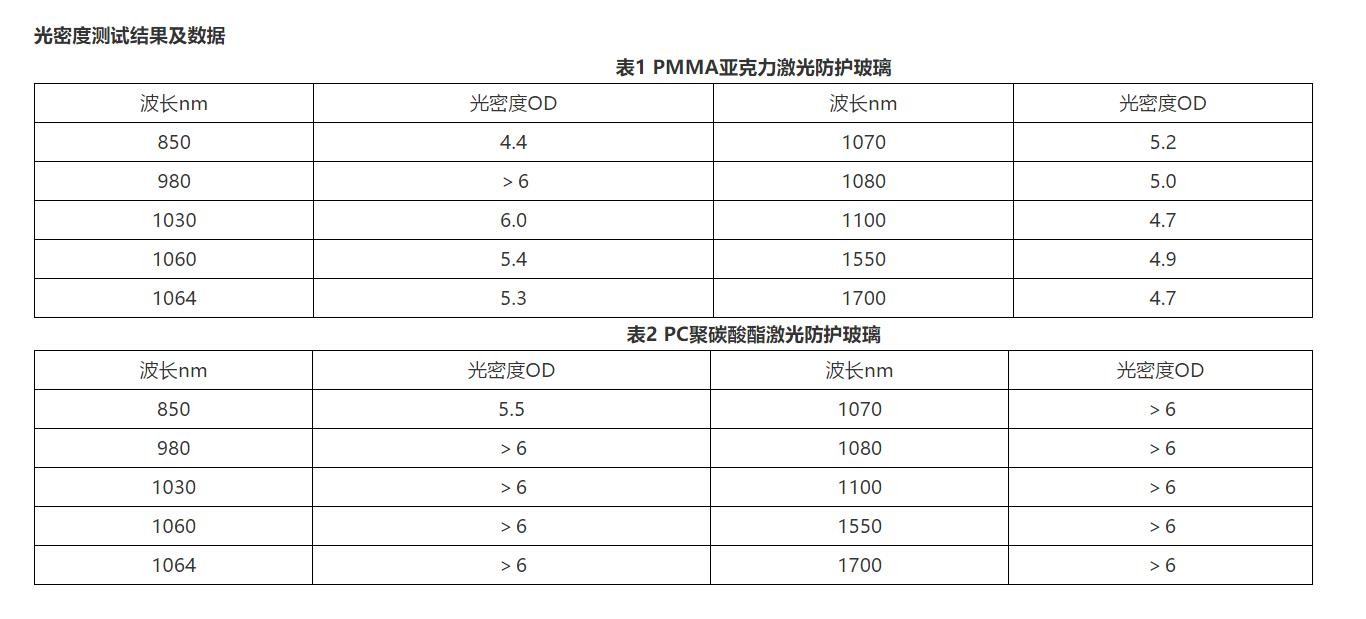 2. 光密度optical Density(OD):OD数值越大,激光防护产品的防护能力越强。