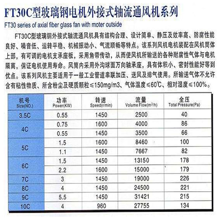 FT30-C型电机外置皮带式轴流风机,材质可做成碳钢、玻璃钢、PP塑料防腐材质,电机外置(可根据需求使用防爆电机),皮带式传动。具有结构紧凑、噪声低、效率高、耐腐蚀性能好等特点。主要用于一般工业管道的串联加压、排气、送风等,使用环境输送气体的温度≤60℃,输送气体中的颗粒或粉尘含量≤150mg/m3。可按使用条件安装防爆型电机,输送易燃易爆的气体,订货时要特别表明所需的要求。