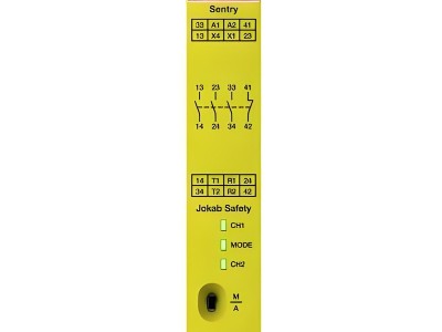 JOKAB公司1988年在瑞典成立,JOKAB产品为单台机器或整条生产线提供安全的解决方案。产品有安全可编程控制器,安全继电器,安全开关,安全光幕,扫描仪,单双手控制器等产品 JOKAB的目标是成为“机器安全的伙伴”为各地许多工业企业解决了安全问题。该产品广泛应用于印刷行业,食品行业,汽车制造,锻压行业及较为恶劣的环境下。其安全开关EDEN是带有动态信号的传输的非触点传感器。他有较长的检测距离并以高的安全级别操作,用于恶劣环境下,如高压冲洗,高温和低温。用于长时间停机的连锁装置。