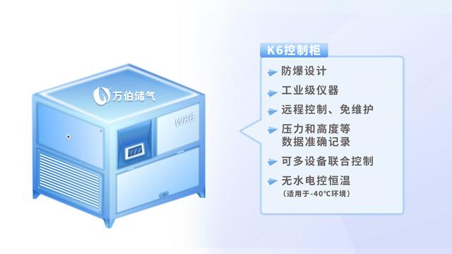 k6控制柜:全新K6系统采用304不锈钢制造,集万伯10年经验。内置西门子PLC、传感器、备用控制系统、7寸液晶触屏、双防爆风机、外膜电磁阀、外膜备用安全阀等,配备主动防护和备用控制系统,保证双膜储气柜的平稳运行和安全防护。无水,电控恒温,适用于零下40℃环境。