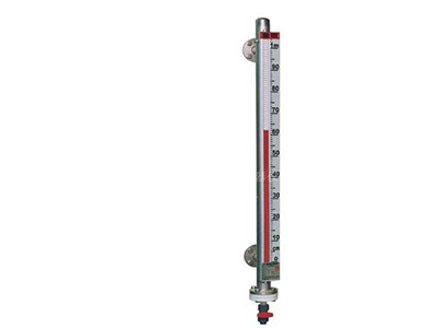 磁翻板液位计主体外的翻板箱受主体内浮子(具有定向磁性源,按不同介质和压力针对研制)的作用促其翻板翻动并显示红白颜色,并随浮子的移动指示不同的液面高度,红色始终表示液位的高低。在指示器左侧配有醒目的刻度标尺,从而使液位的指示显得更加清晰。