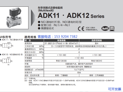 ADK11常闭(通电时通)型,ADK12常通型(通电时闭)型