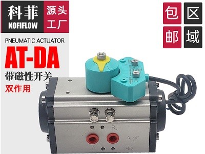 KFF科菲新型(AT/DA/RT/SR系列)阀门气动执行器是将输入的气压信号转换成90度,再以扭转矩形形式输出的执行机构。该系列气动执行器是一种外型小、性能高的的执行结构,分为双气控型和单气控型两种,与角行程型控制阀组合可用于调节和开关的场合,也可用于其他回转运动的场合。