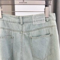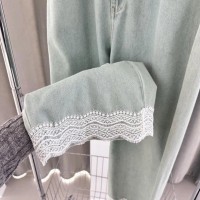 温碧霞自创IRENENA服装春季新款蕾丝蓝色阔腿牛仔裤
