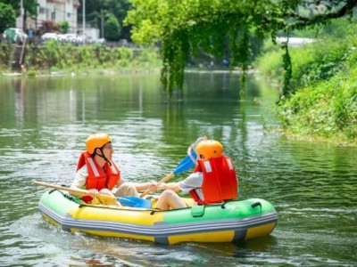 漂流河道全长2公里,落差达50米,为体验者带来约1-1.5小时的快乐航程。沿途既有水面开阔的缓流段,也有溪道曲折、水流湍急、跌宕起伏的刺激段,让孩子们在清凉的水中尽情欢笑。