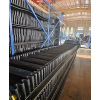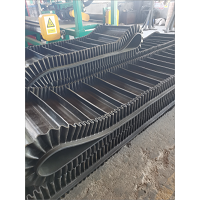 大倾角挡边带, 是由基带、挡边、横隔板3部分组成。挡边起防止物料测滑撒落的作用。为便于绕过滚筒,档边设计成波纹状;横隔板的作用是承托物料,为了实现大倾角输送,采用T型TC型。档边和横隔板是用二次硫化的方法与基带连接的,具有很高的连接强度。用于输送易散落的粉状、粒状、小块状、糊状及液态状物料。其特点:适用于倾角0°~90°散装物料的输送;具有使用范围广、占地面积小、无转运点、减少土建投资、维护费用低、维修容易输送量大连续化、高效率、大倾角运输,操作安全,使用简便,,运费低廉,并能缩短运输距离,降低工程造价,节省人力物力等特点;解决了普通带和花纹带所不能达到的输送角度;还可根据使用环境,设计成完整、独立的输送系统,避免了间断输送和复杂输送的提升系统。可沿水平、倾斜、垂直和变角方向输送各种散装物料,从煤、矿石、沙子到化肥和粮食等。物料粒度不限,可从很小的粒度到400mm的大粒度,输送量可从1立方米/小时到6000立方米/小时。