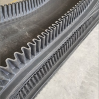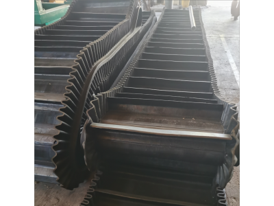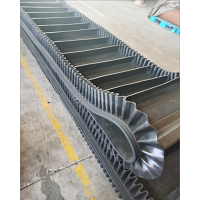 大倾角挡边提升带, 是由基带、挡边、横隔板3部分组成。挡边起防止物料测滑撒落的作用。为便于绕过滚筒,档边设计成波纹状;横隔板的作用是承托物料,为了实现大倾角输送,采用T型TC型。档边和横隔板是用二次硫化的方法与基带连接的,具有很高的连接强度。用于输送易散落的粉状、粒状、小块状、糊状及液态状物料。其特点:适用于倾角0°~90°散装物料的输送;具有使用范围广、占地面积小、无转运点、减少土建投资、维护费用低、维修容易输送量大连续化、高效率、大倾角运输,操作安全,使用简便,,运费低廉,并能缩短运输距离,降低工程造价,节省人力物力等特点;解决了普通带和花纹带所不能达到的输送角度;还可根据使用环境,设计成完整、独立的输送系统,避免了间断输送和复杂输送的提升系统。可沿水平、倾斜、垂直和变角方向输送各种散装物料,从煤、矿石、沙子到化肥和粮食等。物料粒度不限,可从很小的粒度到400mm的大粒度,输送量可从1立方米/小时到6000立方米/小时。