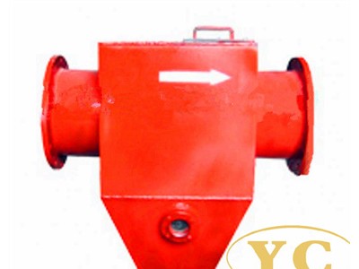 煤矿抽放瓦斯无阻力排渣装置是瓦斯抽放管路上安装的一种排渣装置。一般放置在铜网式防回火及水封式防爆器之前。该装置通过气流离心沉淀原理,阻拦和沉淀瓦斯抽放管路内的煤渣、石块及其它杂物,净化瓦斯气流,使瓦斯气体在抽放管路内畅通无阻,起到保护抽放瓦斯设备的全作用。