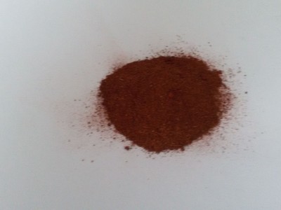 【性状】本品略呈类圆四方形或方砖形,表面暗红,有光泽,附有因摩擦而成的红粉。质硬而脆,破碎面红色,研粉为砖红色。气微,味淡。在水中不溶,在热水中软化。
