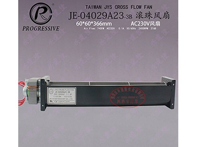 台湾金亿翔JYS贯流风机JE-04029A23-3B,AC230V风机,转速为2400PRM,126立方米/时,双滚珠轴承,扇叶直径为40mm的横流风扇,散热长度为300mm,风机总长度(含电机)是366mm,全新家用电器等设备用贯流风机!