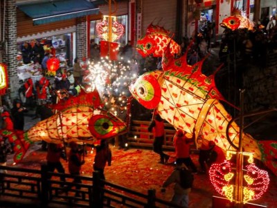 嬉鱼灯夜游:夜幕降临时,在古城巷弄中欣赏鱼龙舞,体验一场属于孩子们的嬉鱼灯活动,感受传统节日的欢乐.