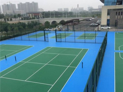 丙烯酸运动场地有硬地和弹性两种材料。丙烯酸面层厚度1.5mm-2mm,可适用于沥青基层或高质量的混凝土基层。
