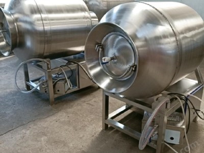 真空滚揉机是在真空状态下,利用物理冲击原理,让肉块或肉馅在滚筒内上下翻动、相互撞击、摔打,从而达到按摩、腌渍作用。当筒体转动时,肉块按导向往里挤压,经过摔打和挤压,肉体蛋白质分解成水溶性蛋白,易被人体吸收。