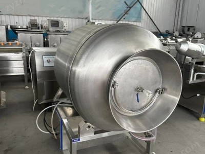 真空滚揉机是在真空状态下,利用物理冲击原理,让肉块或肉馅在滚筒内上下翻动、相互撞击、摔打,从而达到按摩、腌渍作用。当筒体转动时,肉块按导向往里挤压,经过摔打和挤压,肉体蛋白质分解成水溶性蛋白,易被人体吸收。