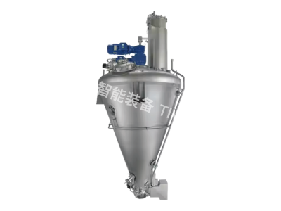 干燥混合一体化:作过程为间歇批操作,混物料进入料仓后,通过筒壁夹套和螺旋桨内部给热使给执面积达到整个容器面积的140%.对物料进行升温千燥。并选择相应的锥型千燥混合器型号(工作容积)达到理想的千燥效果