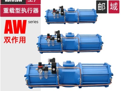 1)、AW系列气动执行器分为双作用式和单作用式(弹簧复位),两个分体气缸,容易制造大尺寸缸体。满足各种大型旋转类阀门的需求。
