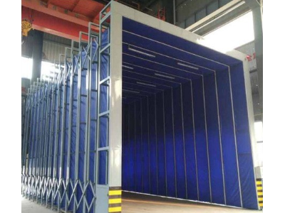 伸缩喷漆室专门解决较大型工件移动运送困难而研制的实用型环保喷漆房,它可根据使用大小,任意调整,减少对工作产地的占用。无需设备专门的移动平台,只需要配套车间的行车即可对工件进行周转;移动伸缩式无泵水幕喷漆房 工艺流程:1、预备工作:伸缩移动前室收缩合拢;2、工件准备:工件移入区域就位;3、喷漆准备:伸缩移动前室展开工件喷漆;4、喷漆完成:伸缩移动前室 收缩合拢;5、喷漆完成:工件移出场地; 规格参数:1、伸缩喷漆房是专门为解决较大型工件移动运送困难而研制的实用型产品,喷漆区可根据产量大小,任意调整,充分利用生产场地和操作空间;2、使用伸缩移动喷漆房在生产工艺上简化了不断用车间天车吊运大型笨重工件来回周转的工艺流程;而无需专门的运输工具;展开长度可以在任意位置;3、伸缩移动喷漆房整体为框架传动结构,每组框架间均有阻燃PVC布密封连接,安装快捷、外形美观,结构精巧,使用方便,制造成本低;4、工作中房体沿地面铺设的轨道前后伸缩移动,采用两边分别驱动,互相连锁的方式运行,前后限位控制,机械运行稳定,操作简单,使用方便;5、工作区内安装有防爆照明灯,可满足生产中的照明需要;6、可根据客户的实际生产需要定做各种型号的非标尺寸;7、在无需进行喷漆流程的工作时间内,可将前室并拢,节省空间场地作为其他与喷漆交叉作业的工序所使用;8、可选配各种喷漆空气净化设备(如:水帘喷漆房、无泵水幕喷漆室、干式喷漆房);适合各类客户的需求;9、可选配加热送风系统和辅助烘干房装置,其结构方式和适应性使其能满足产品生产的各项功能要求;10、移动室体预装配化程度高、现场施工快捷;